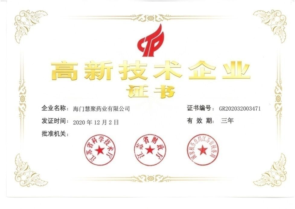 近日,LY体育·(国际)官方网站-lysport药业收到由江苏省科技厅、江苏省财政厅、国家税务总局江苏省税务局联合颁发的《高新技术企业证书》。公司自2008年首次通过“高新技术企业”认定,这是LY体育·(国际)官方网站-lysport药业连续第5次获得此项资质。此次通过高新技术企业的再认定,是对公司技术研发实力和科技成果转化能力的肯定,将进一步激励公司持续加大科研投入,激发公司自主创新的热情,在引入高精尖人才、提升科技创新能力、打造核心产品等方面持续发力,充分发挥高新技术企业的优势和引领作用。