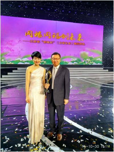 经国务院批准,江苏省政府专门设立目前大陆各省市中首个面向台资企业的表彰奖项"紫峰奖"。该奖根据江苏台资企业特点,聘请了专门机构制定科学有效的评价体系,设立了五大类别奖项,对扎根江苏、表现突出的台资企业进行了表彰,继续支持台资企业转型升级、做大做强,进一步扩大深化苏台各领域交流合作,努力让合作成果惠及两地人民。可成科技等10家企业荣获"纳税贡献领军企业"奖,仁宝电脑集团等10家企业荣获"出口贸易领军企业"奖,大陆首家台资法人银行永丰银行(中国)有限公司等4家企业荣获"现代服务业领军企业"奖,以海门LY体育·(国际)官方网站-lysport药业有限公司领衔的30家企业荣获"成长型企业"奖,昆山超绿光电有限公司等10家企业荣获"青年创业企业"奖。