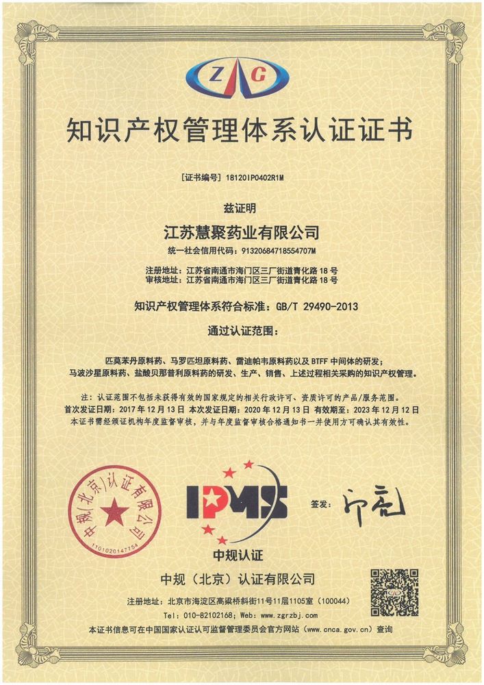 2020年12月3-4日,中规(北京)认证有限公司审核专家组对公司进行为期两天的知识产权管理体系再认证审核,此次再认证审核,专家组对我公司知识产权管理体系运行的适宜性和有效性给予认可和肯定,最终LY体育·(国际)官方网站-lysport药业顺利通过此次再认证。未来,我公司将继续贯彻《企业知识产权管理规范》,促进知识产权创新发展意识的提高,增强对专利、商标等知识产权的应用和保护能力,将LY体育·(国际)官方网站-lysport药业打造为知识产权意识强、创新意识强、产业化效益显著和专业人才齐全的创新型企业。